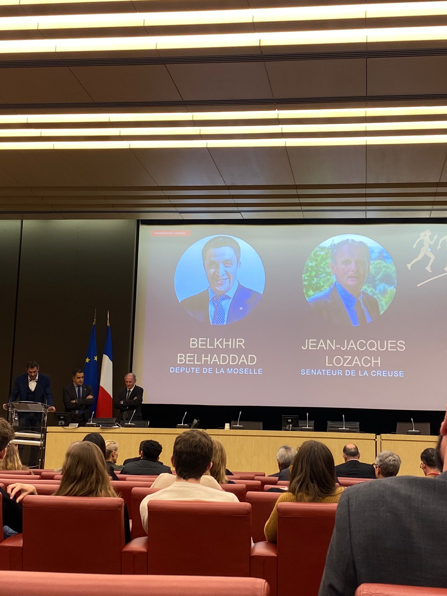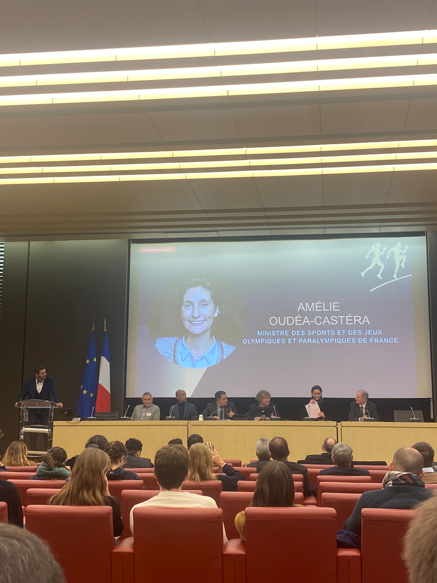 Après que le Député Belkhir BELHADDAD et le Sénateur Jean-Jacques LOZACH, aient introduit les débats par le projet de loi « Héritage » pour la démocratisation du sport, plusieurs tables rondes se sont enchainées. D’anciens grands sportifs tels que Stéphane DIAGANA, Champion du monde du 400m, et Marie-Amélie LE FUR, médaillée à neuf reprises aux Jeux Paralympiques, ont proposé leurs solutions et pu débattre avec plusieurs docteurs, chercheurs ou représentants d’associations sportives. Parmi lesquels, Marie BARSACQ, Directrice en charge de l’impact et de l’héritage de Paris 2024, Romain SOUBEYRAN, Directeur de Centrale SUPELEC, ou encore Cédric TERRET, Président de la Fédération Française du Sport Universitaire, ont pu apporter leurs avis et leurs travaux. L’idée maîtresse est claire : une pratique sportive régulière est un gage de bonne santé et a contrario, l’inactivité physique est un réel problème sociétal et de santé publique. Enfin, la Ministre de Sports et JOP, Amélie OUDEA-CASTERA, est intervenue pour introduire la Grande Cause Nationale de l’année 2024 qui se prêtait parfaitement à l’assemblée : « Bouger 30 minutes par jour ».