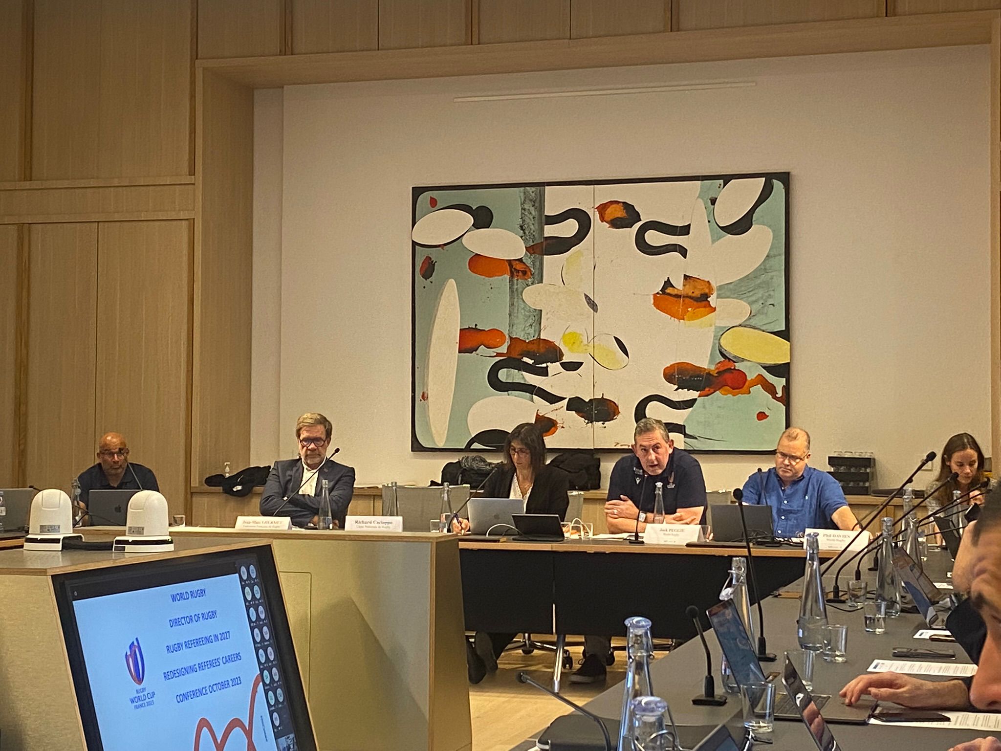 L’événement s’est déroulé le 24 octobre au siège de la Ligue Nationale de Rugby (LNR) à Paris. Un panel de chercheurs et universitaires était réuni pour l’occasion auquel se sont ajoutés les témoignages de quatre arbitres internationaux sélectionnés pour la Coupe du Monde de rugby : Luke Pearce, Nika Amashukeli, Matthew Carley et Angus Gardner.