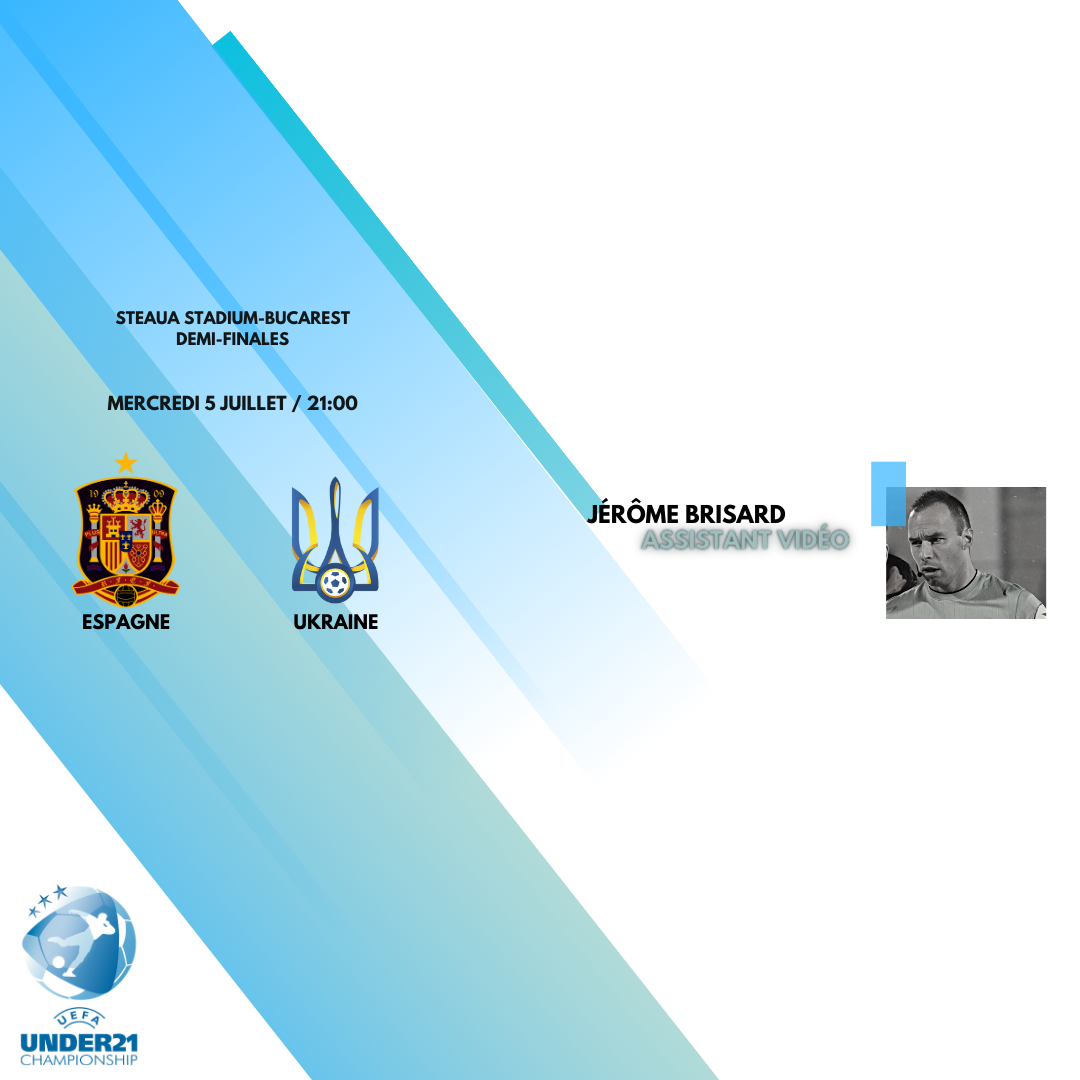 Jérôme BRISARD sera arbitre assistant vidéo de la demi-finale de l'Euro Espoirs opposant l'Espagne à l'Ukraine !