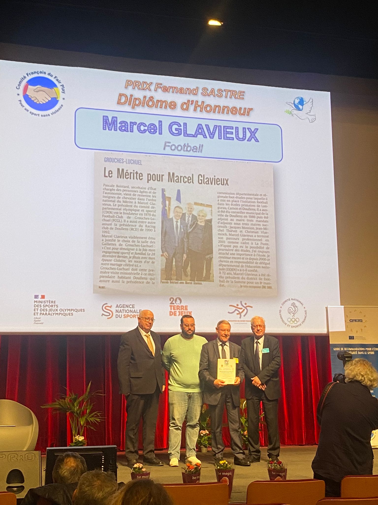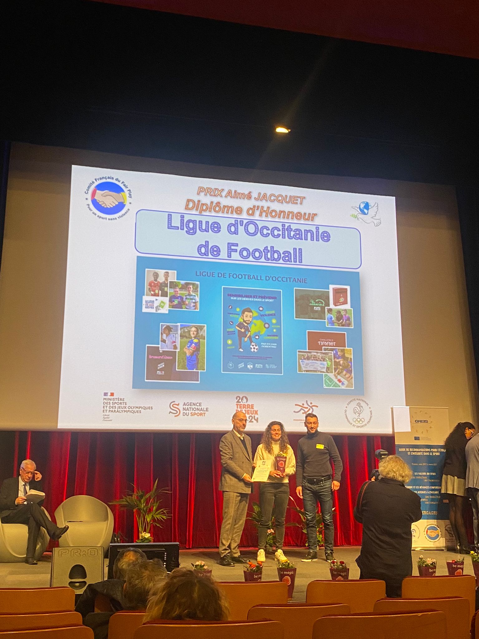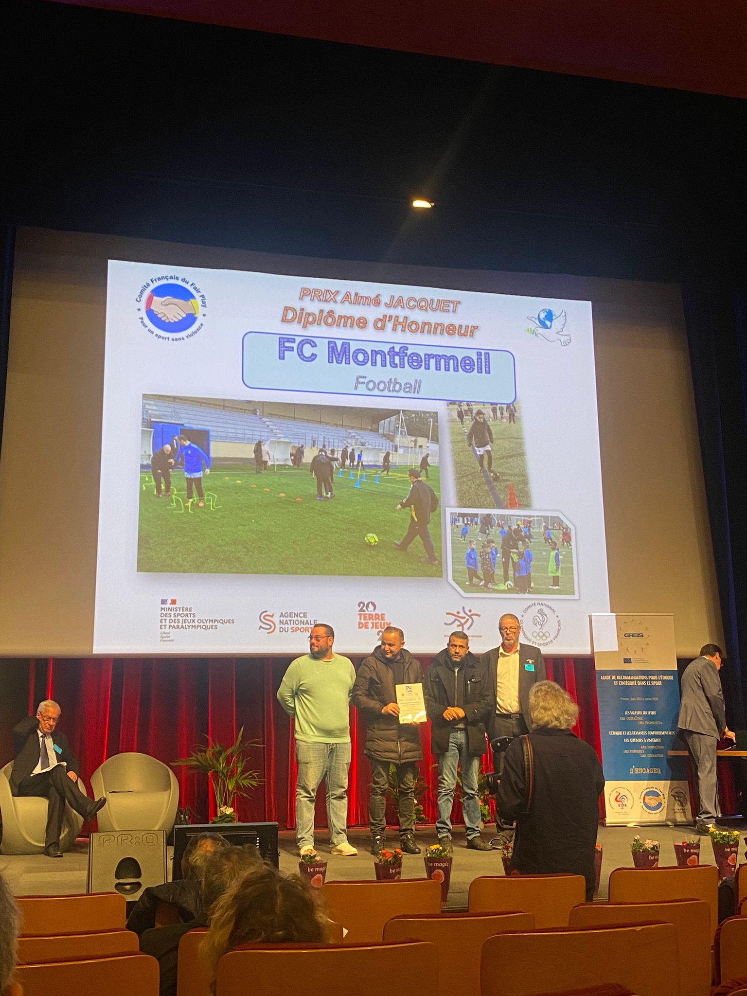Parmi la grande diversité de sports primés, le football était bien représenté. Les diplômes d’honneur, Prix Aimé JACQUET, ont été attribué au Football Club de Montfermeil ainsi que la Ligue Régionale d’Occitanie de Football. La Football School Academy de Pusignan, honorée du Prix Egal Accès Pierre DE COUBERTIN, a été mise en avant pour « l’excellence de sa formation footballistique et humaine ». Marcel GLAVIEUX, Président du District Saône-et-Loire, s’est vu remettre le Prix Fernand SASTRE pour son investissement associatif et sa lutte contre les violences.