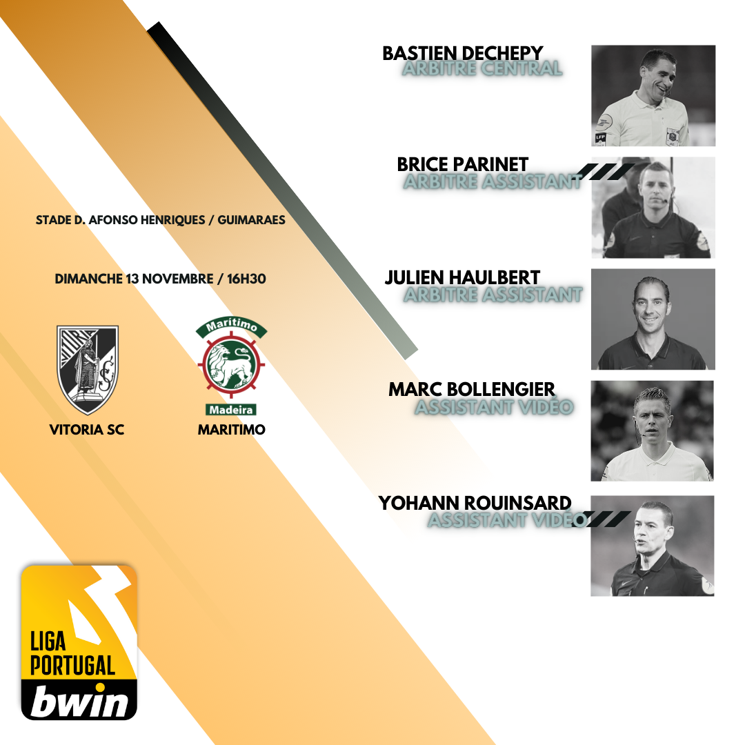 Bastien DECHEPY sera accompagné de Brice PARINET, Julien HAULBERT, Marc BOLLENGIER et Yohann ROUINSARD pour le match entre le Vitoria Guimarães et Maritimo ce dimanche 13 novembre.