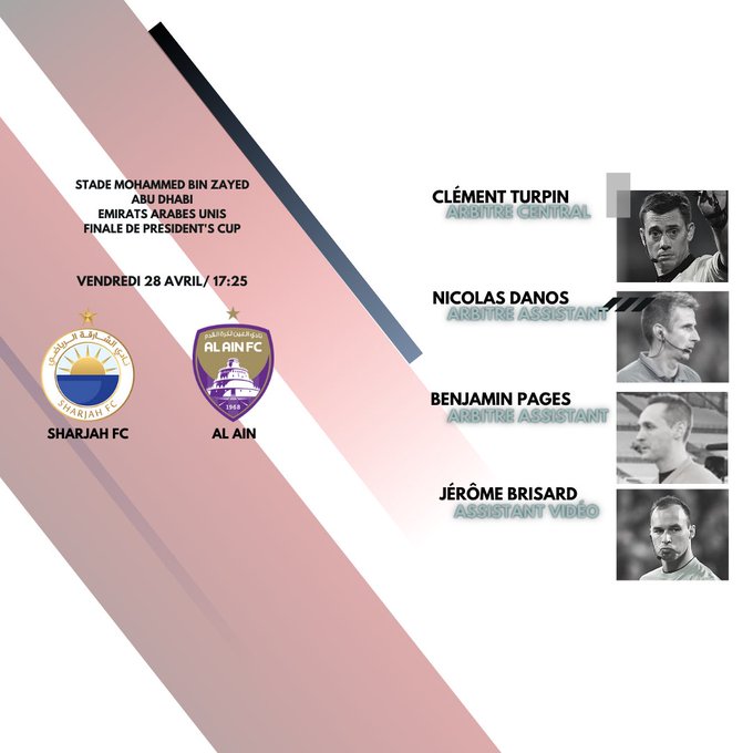 Clément TURPIN sera accompagné de Nicolas DANOS, Benjamin PAGES et Jérôme BRISARD pour la finale de la President’s Cup entre le Sharjah FC et Al Ain FC aux Émirats Arabes Unis !