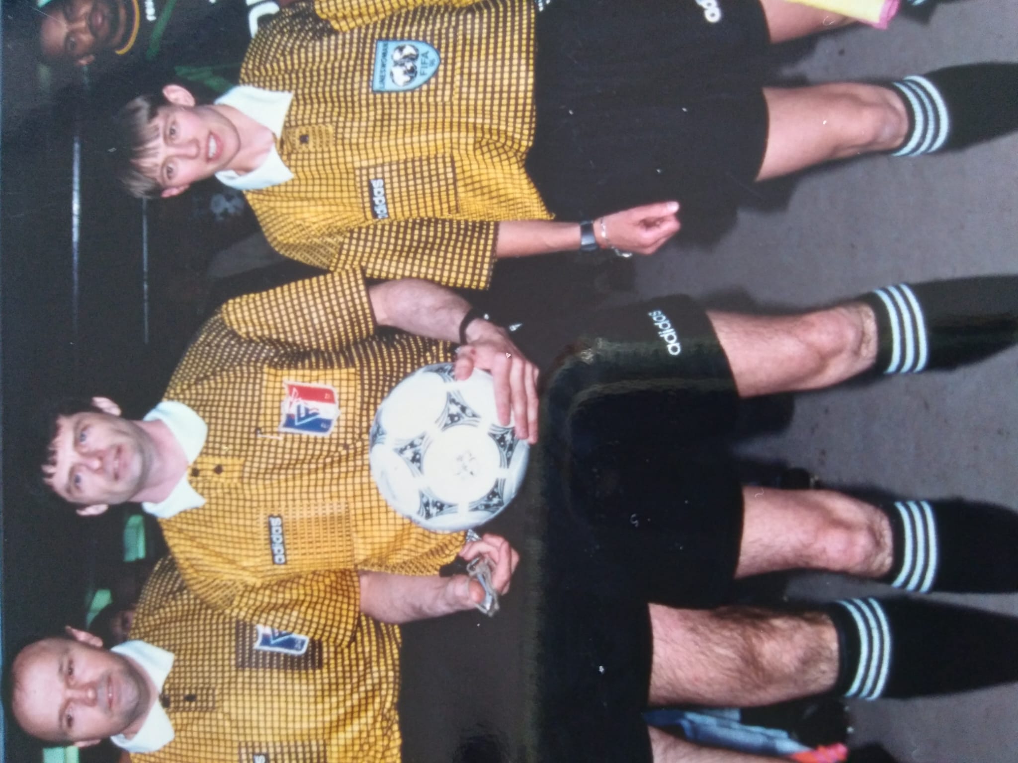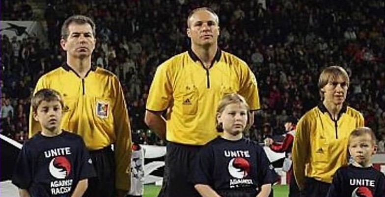 Eric POULAT, Daniel BEQUIGNAT et Nelly VIENNOT, avant le match Leverkusen - Roma, pour les phases de groupes de la LDC 1996