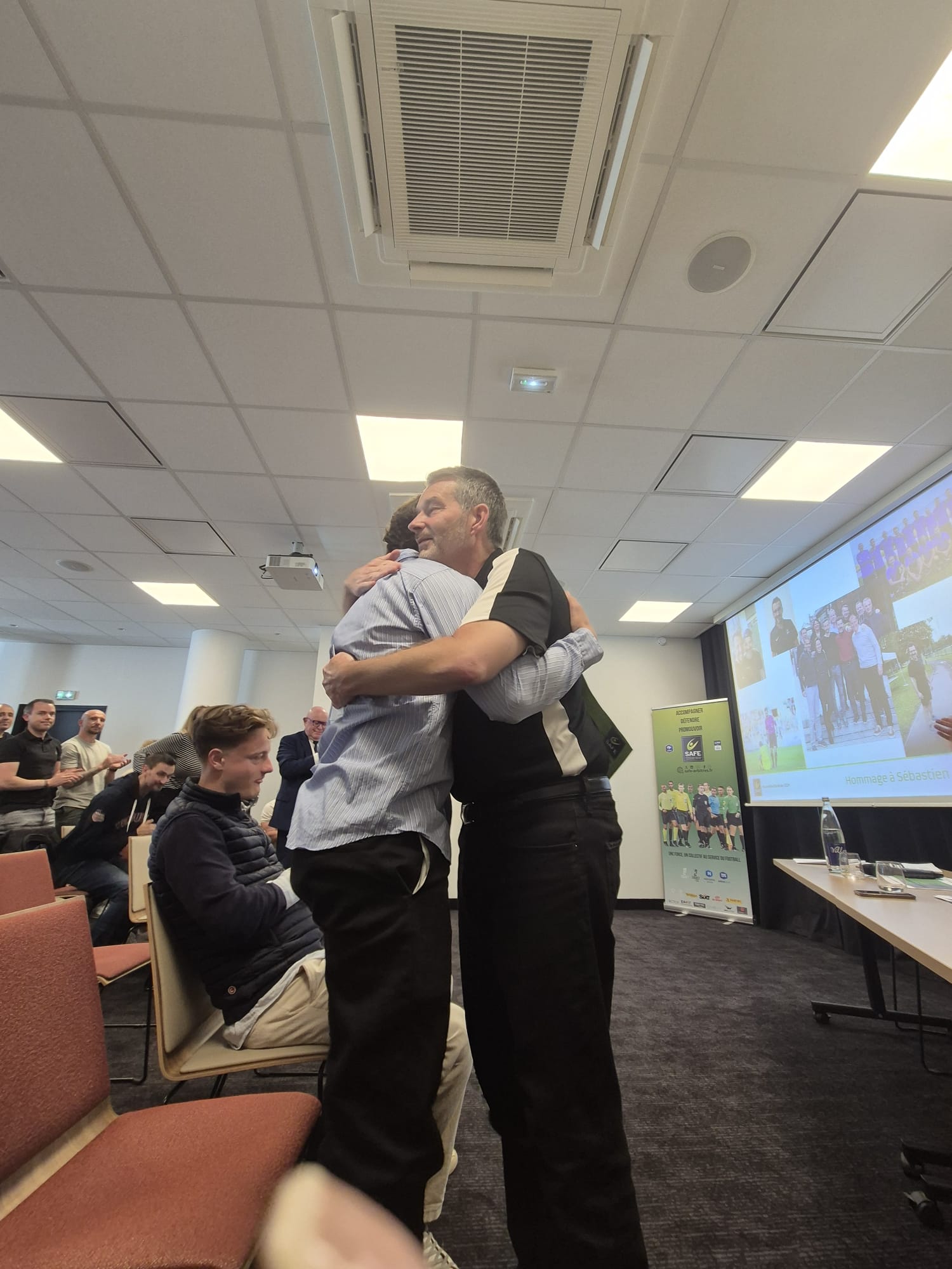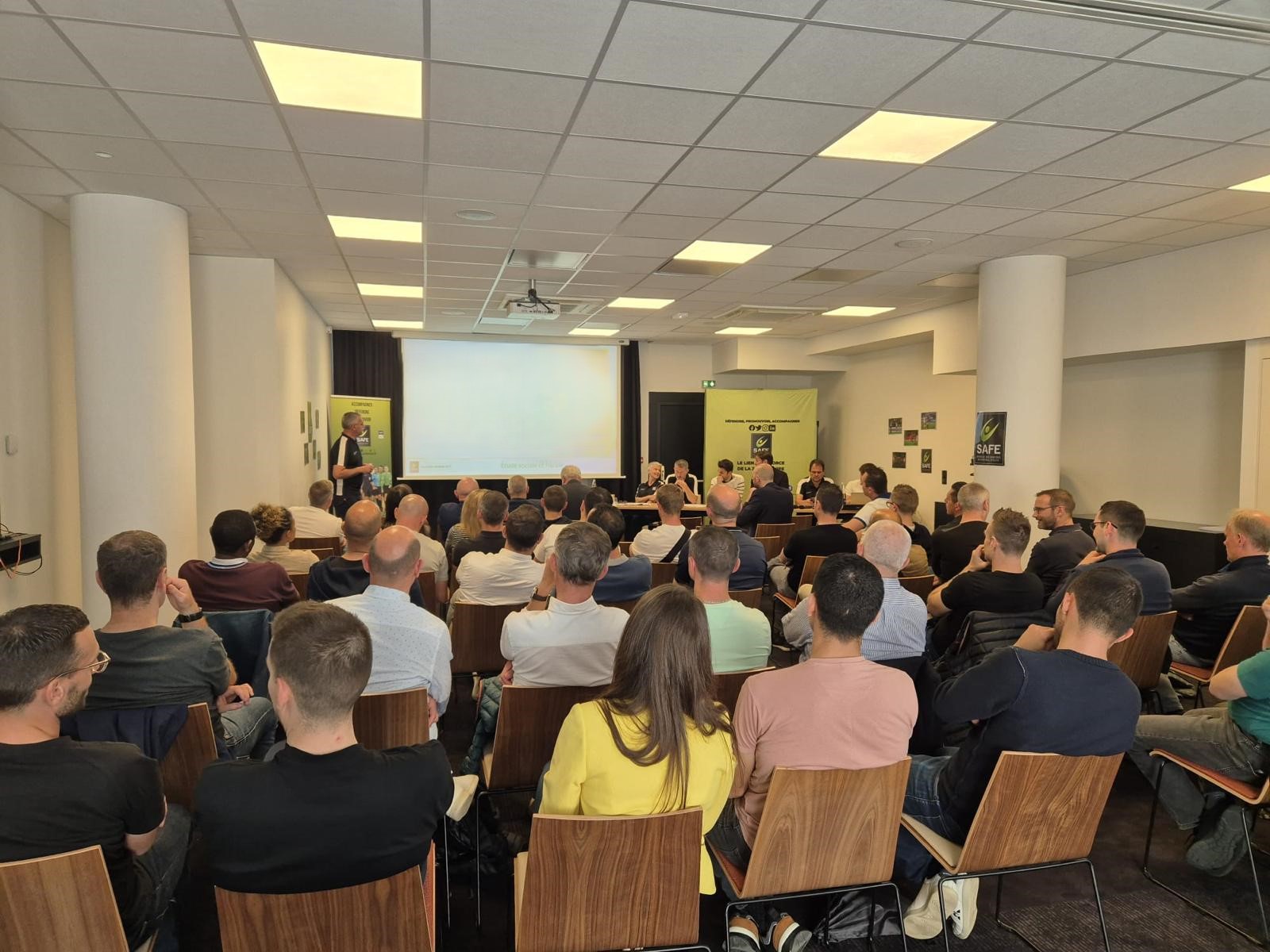 Le lendemain après-midi, une cinquantaine d’Adhérents venus en famille, s’est rassemblée à Lille pour l'Assemblée Générale annuelle du SAFE. Le président, Bastien DECHEPY, a ouvert la réunion au cours de laquelle le SAFE a dressé un bilan des actions menées tout au long de la saison à la fois sur le fonctionnement du syndicat mais aussi sur les trois missions : Accompagner, Défendre et Promouvoir. Parmi les personnalités présentes qui sont intervenues tour à tour : Pascal PARENT (COMEX FFF et CFA), Patrick VAJDA (président AFCAM), et Jean-Claude LEFRANC (président UNAF). Tous ont pu prendre part au moment d’émotion en clôture de cette AG avec un hommage à Sébastien et Julie DESIAGE, en présence de leur fils, Noah.