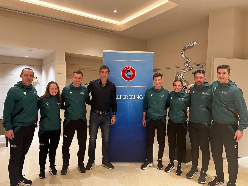 Les arbitres en stage à RomeLes arbitres internationaux parmi lesquels sept français (Benoît MILLOT, Audrey GERBEL, Clément TURPIN, Benoît BASTIEN, Stéphanie FRAPPART, Pierre GAILLOUSTE et François LETEXIER), en stage à Rome depuis le 29 janvier et jusqu’au 1er février. Au programme : tests physiques, débriefing des phases de groupes et préparation à la reprise des différents compétitions européennes.