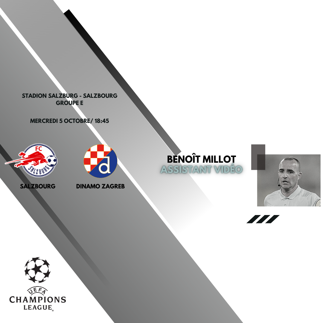 Benoît MILLOT sera arbitre assistant vidéo de la rencontre d'UEFA Champions League entre Salzbourg et le Dinamo Zagreb !